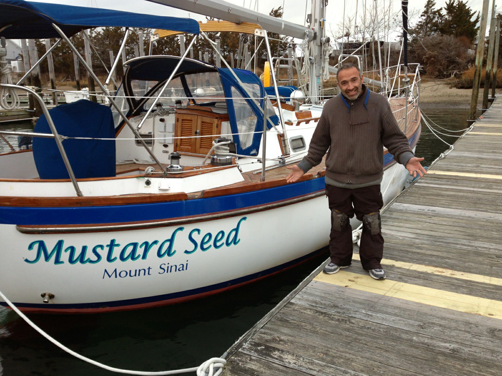 Frustrated, disappointed, and exhausted, I pondered: “How on earth are we suppose to do this…”  I scanned the small safe harbor wondering where I could bring Aleph Tav with her priceless Torah cargo when I noticed a beautiful sail yacht docked near us… Intrigued to see another boat in the water at this time of the year, I looked to see what the vessel’s name was.  “Mustard Seed”…  I smiled and shook my head…