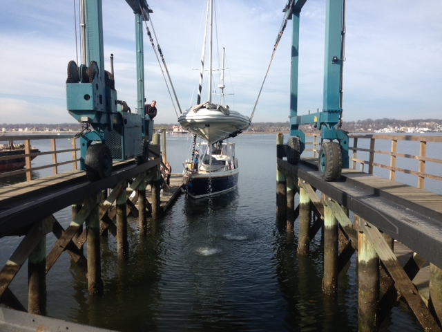 The following morning, the crane operator lowered the boat into the water and drove away.  We all left Aleph Tav and went to the office to thank them and ask what we owed them for their services.  They wished us well and told us there was no charge.  The Crane operator was the marina manager…  We extend our thanks to Nichols Great Kills Park Marina.