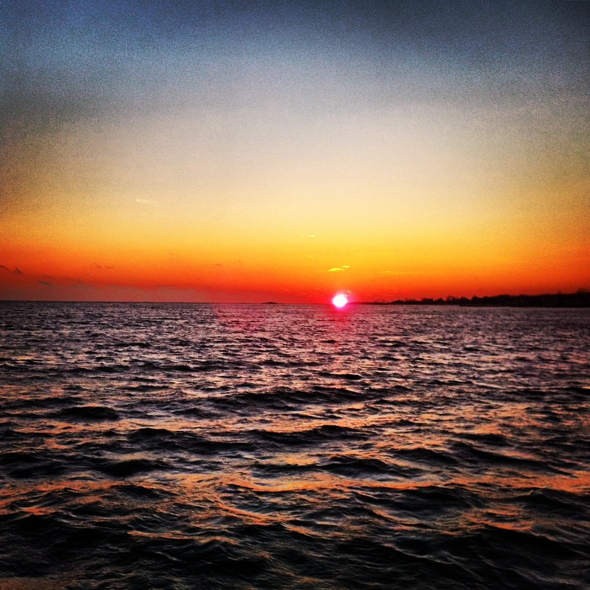 sunsetLisa and I cuddled with a cup of coffee watching the most beautiful sunrise as the autopilot steered Aleph Tav towards Long Island.  The only waves in the sound came from our hull as we glided through the water at a gentle 4.5 knots.